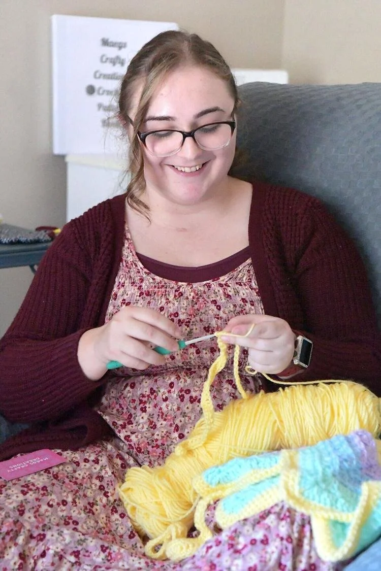 Magean Haganey quietly crochets from her Inverness home. The 21-year-old has lived with a debilitating condition that she and her family have battled since she was a child. Maegan is now working, driving and thriving.